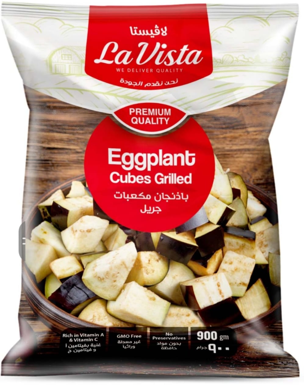 • Cubetti di melanzane fresche e biologiche, grigliati, con una consistenza tenera e un sapore ricco e terroso, leggermente affumicato.